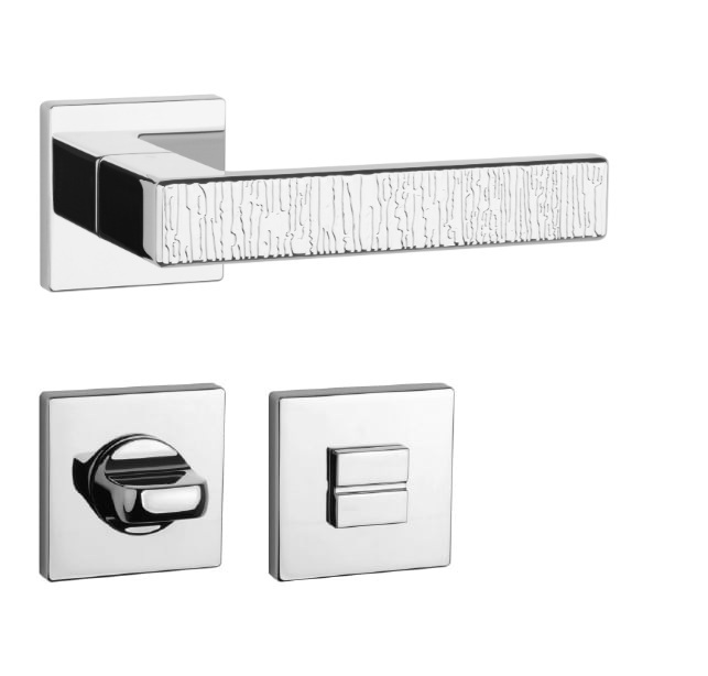 Rozetová klika na interiérové dveře s hranatou rozetou je vyrobena z materiálů vysoké kvality - zamak a je povrchově upravena. Rozeta má rozměr 52x52 mm a tloušťku jen 7 mm. Minimalistický design rozety s vysokou stabilitou kliky na dveřích působí jemně, a tím ponechává prostor pro vyniknutí designu samotné kliky.