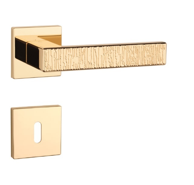 Rozetová klika na interiérové dveře s hranatou rozetou je vyrobena z materiálů vysoké kvality - zamak a je povrchově upravena. Rozeta má rozměr 52x52 mm a tloušťku jen 7 mm. Minimalistický design rozety s vysokou stabilitou kliky na dveřích působí jemně, a tím ponechává prostor pro vyniknutí designu samotné kliky.