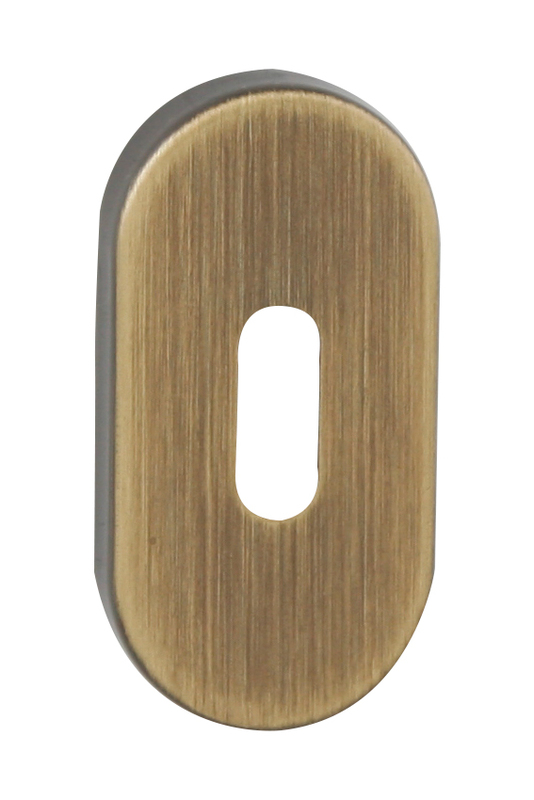 Oválná rozeta s BB otvorem s rozměrem 60 x 30 mm vhodná na úzké profily dveří.