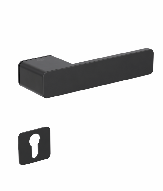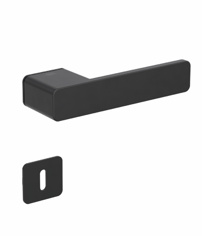 Rozetová klika na interiérové dveře s obdélníkovou rozetou je vyrobena z materiálů vysoké kvality - zamak a je povrchově upravena. Spodní rozeta má rozměry 48 mm x 44 mm a tloušťku 2 mm. Samotná rozeta je součástí designu kliky.