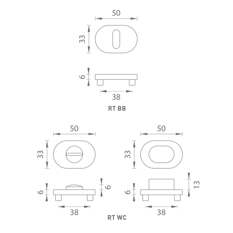 Provedení: rozeta s BB otvorem pro klíč, rozeta s WC klíčem