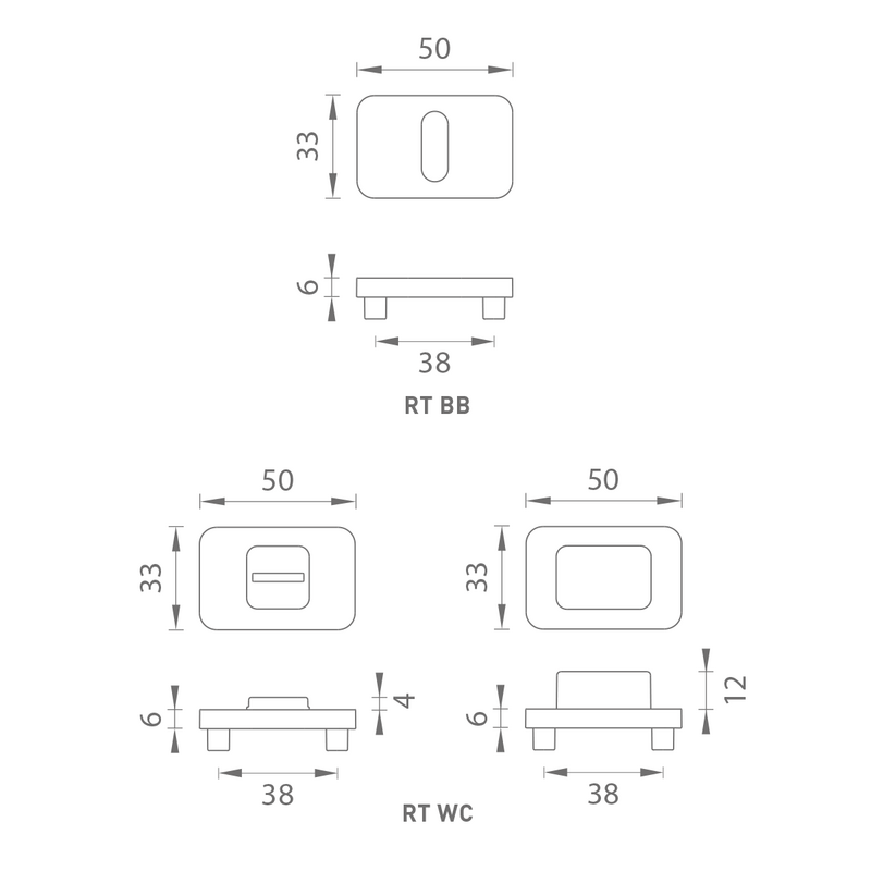 Provedení: rozeta s BB otvorem pro klíč, rozeta s WC klíčem
