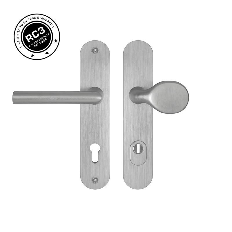 Kování se upevňuje třemi bezpečnostními šrouby, přičemž středový šroub je skrytý pod krytem. Model je dodávaný v roztečích 72 mm, 90 mm a 92 mm, takže se lehce přizpůsobí různým typům dveří.