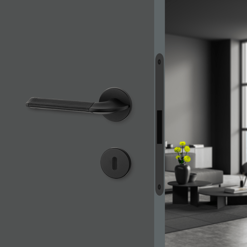 Kování je extrémně bezpečné, ale zároveň designově propracované. Tři masivní šrouby a ocelová montážní podložka jsou elegantně překryty nerezovou designovou krytkou. Ta se jednoduše nasazuje spolu s kličkou pomocí bočních klipů. Výsledkem je čisté, uhlazené řešení bez rušivých prvků, které spojuje technickou funkčnost s vizuální estetikou.
