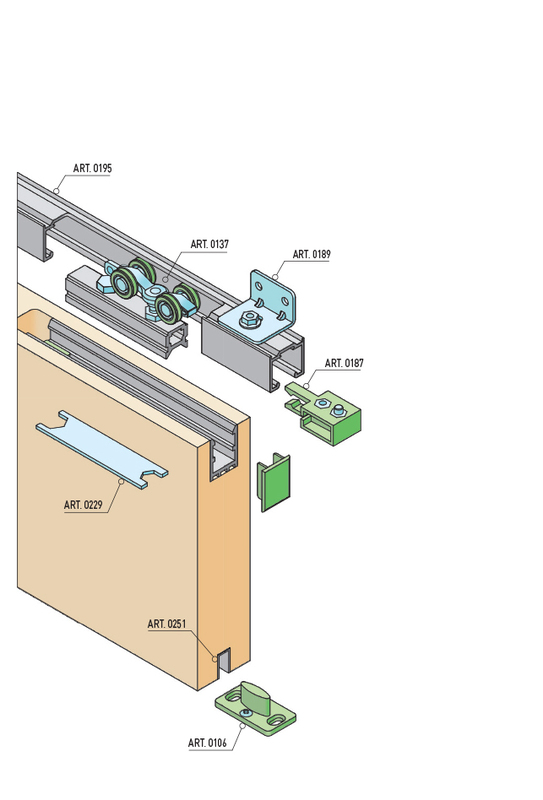 SC - posuvný systém SERIES 100 SILENT FILO pro dvoukřídlé dveře 2D 3000/80 obsahuje: