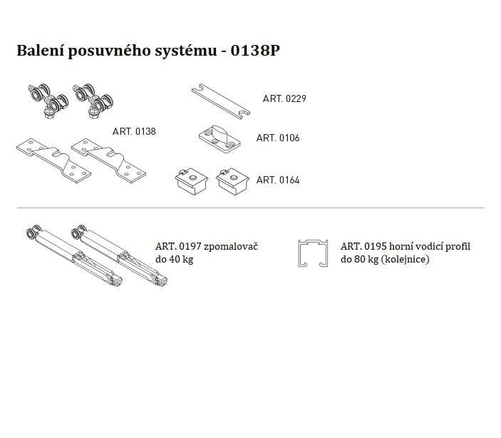 SC – posuvný systém SERIES 100 SILENT S pro jednokřídlé dveře 1D 2000/40 SP obsahuje: