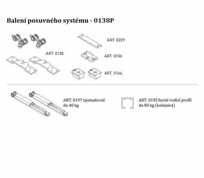 SC – posuvný systém SERIES 100 SILENT S pro jednokřídlé dveře 1D 2000/40 SP obsahuje: