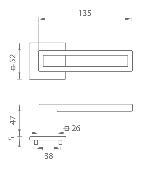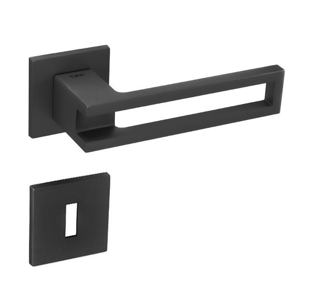 Rozetová klika na interiérové dveře s hranatou rozetou je vyrobena z materiálů vysoké kvality - zamak a je povrchově upravena. Rozeta má rozměry 52 mm x 52 mm a tloušťku pouze 5 mm.